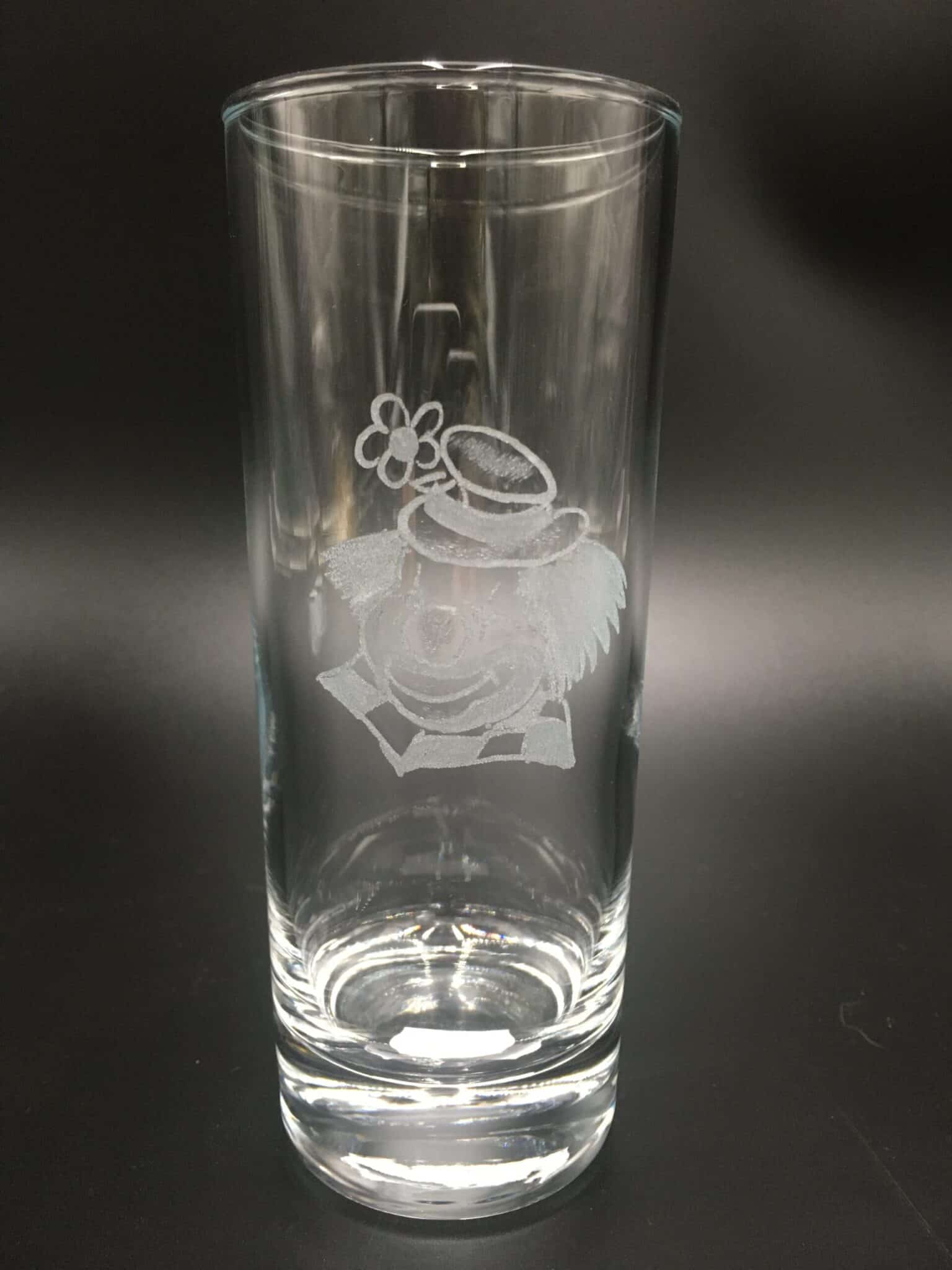 Schönes mundgeblasenes Trinkglas mit Gravur für Kinder