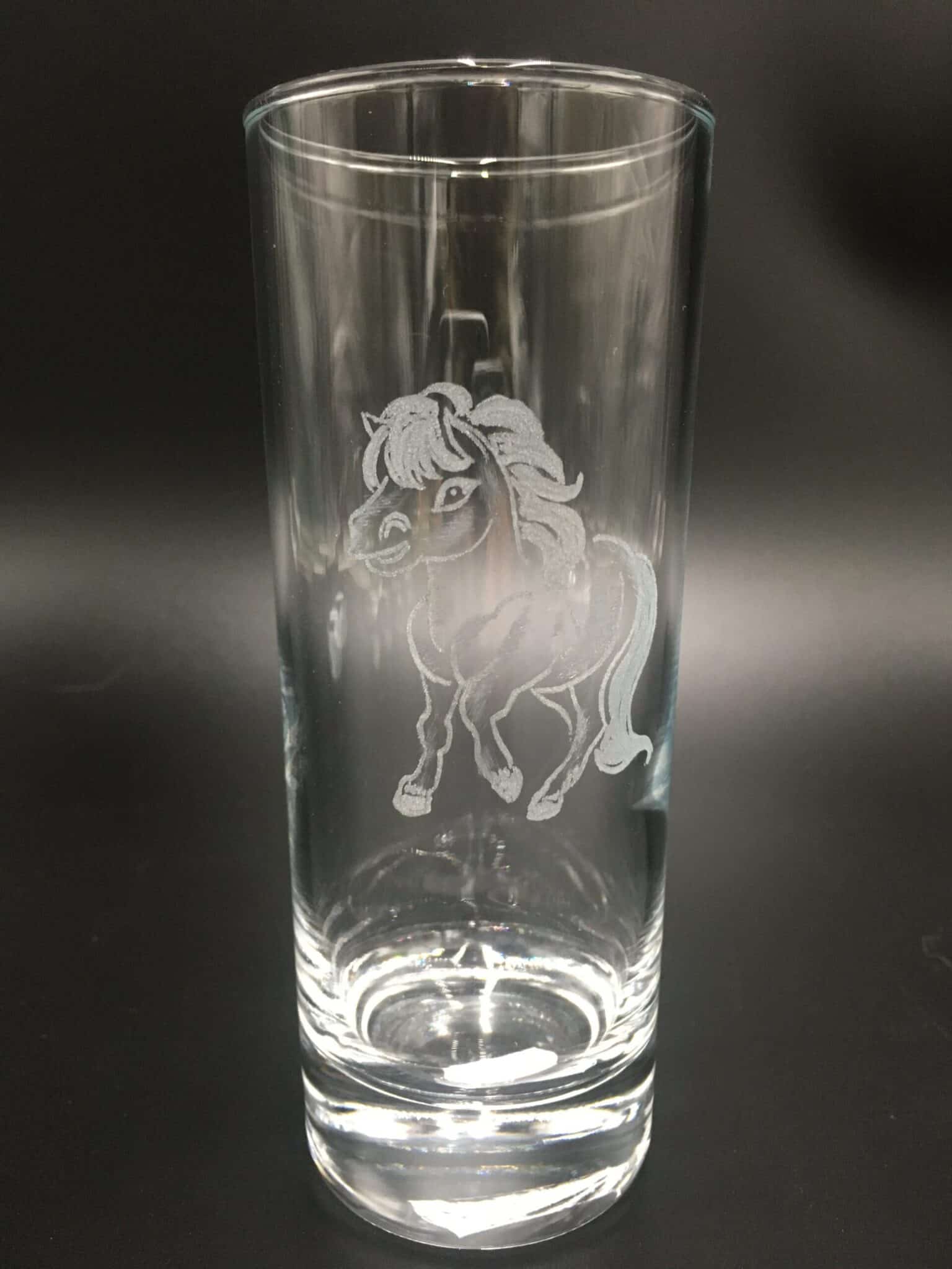 Schönes mundgeblasenes Trinkglas mit Gravur für Kinder