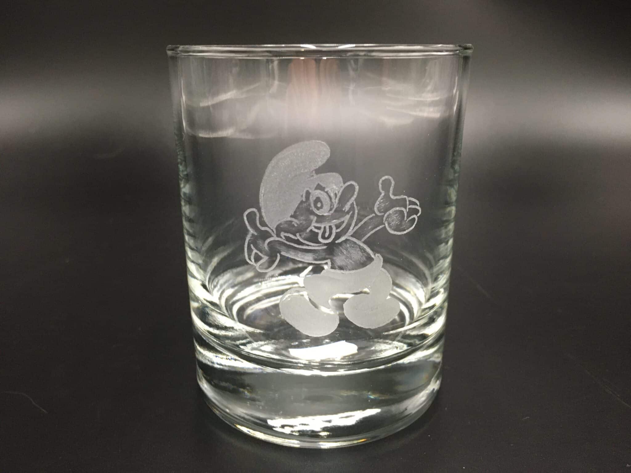 Schönes mundgeblasenes Trinkglas mit Gravur für Kinder