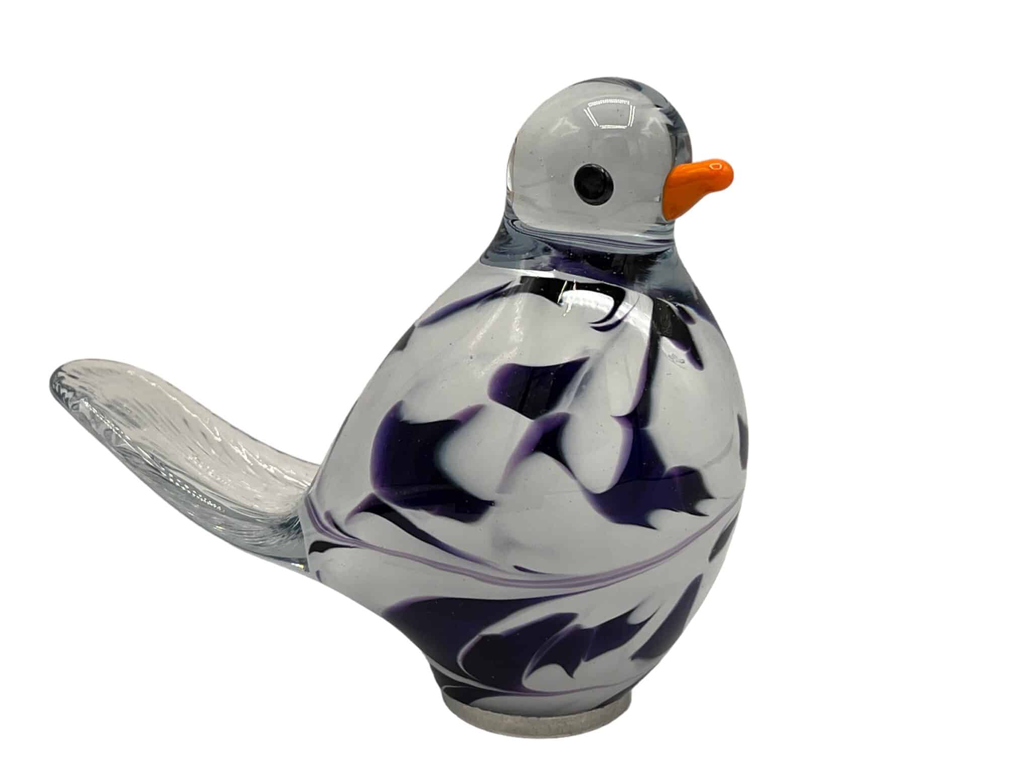 Schöner mundgeblasner Glasspatz als Gartenstecker .