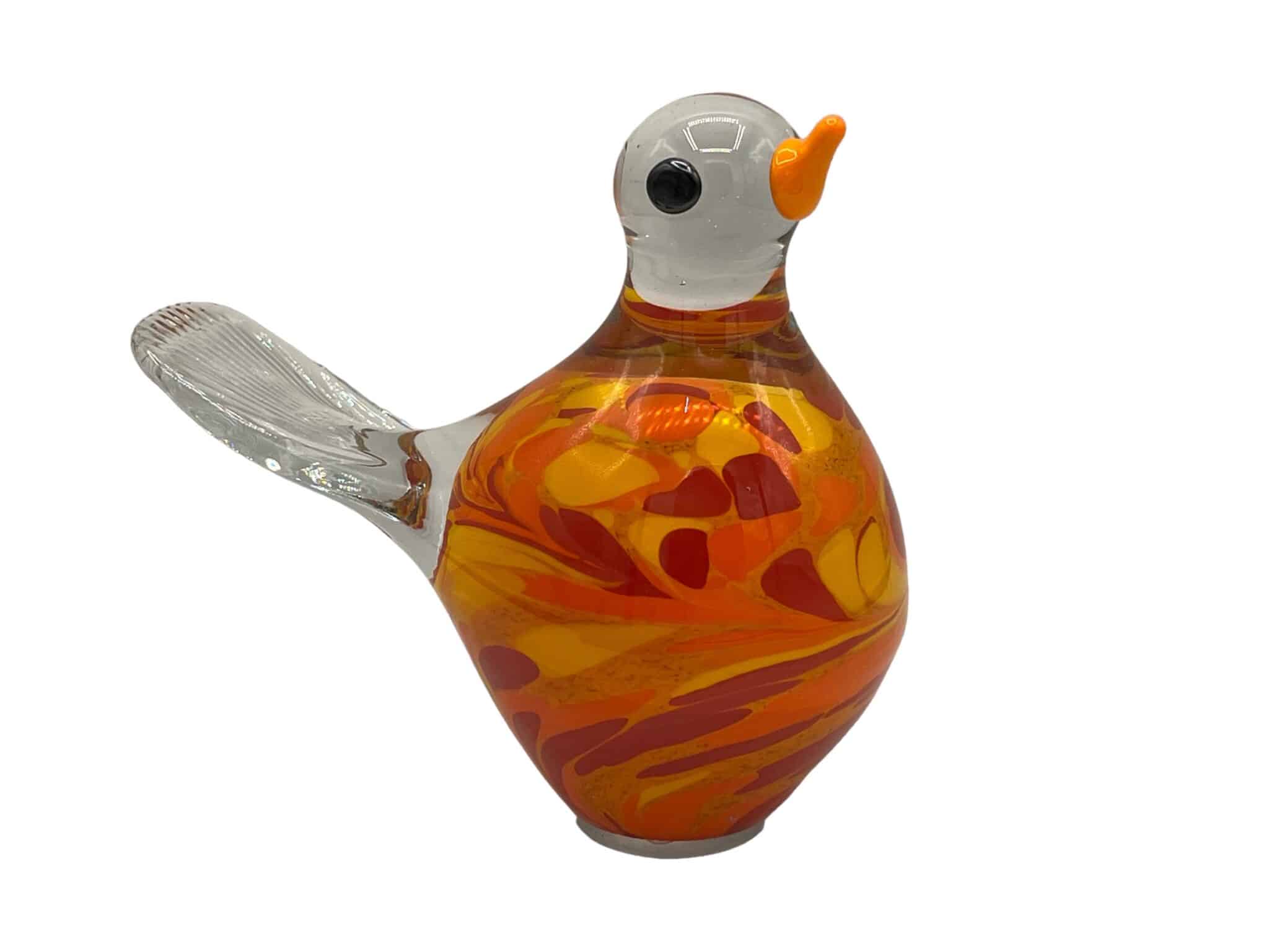 Schöner mundgeblasner Glasspatz als Gartenstecker .